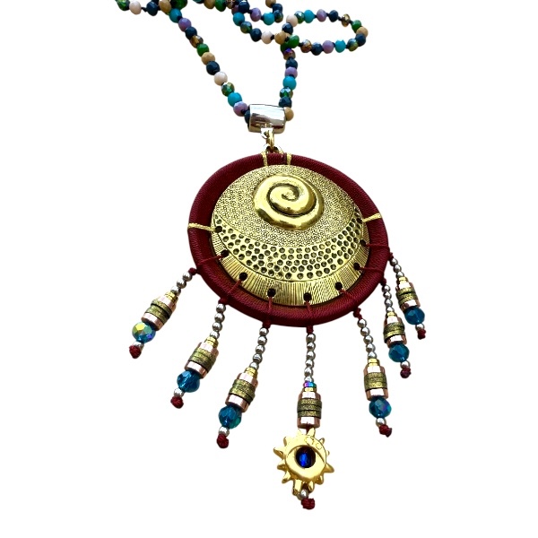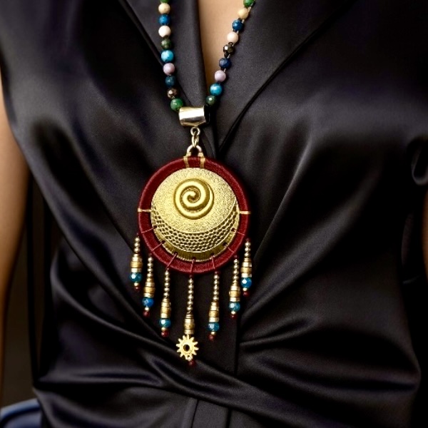 Un collar que une energía solar y sabiduría ancestral, perfecto para quienes buscan una joya con significado profundo y estilo único