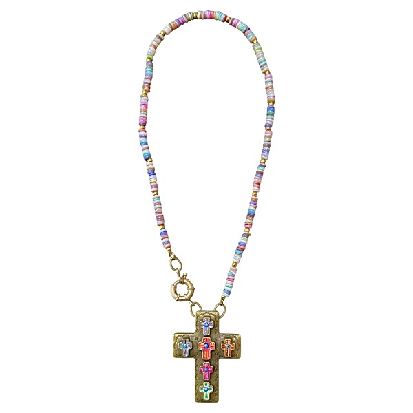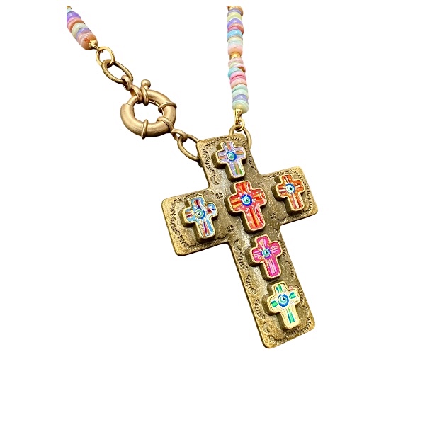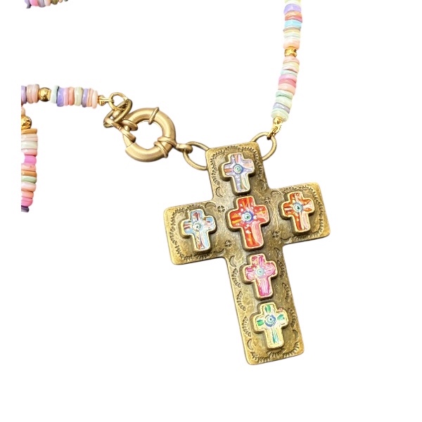 Collar Cruz con Mini Cruces Pintadas a Mano y resina