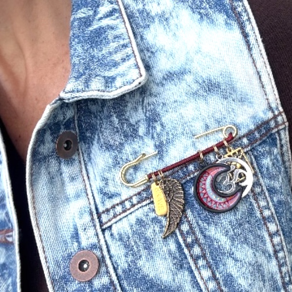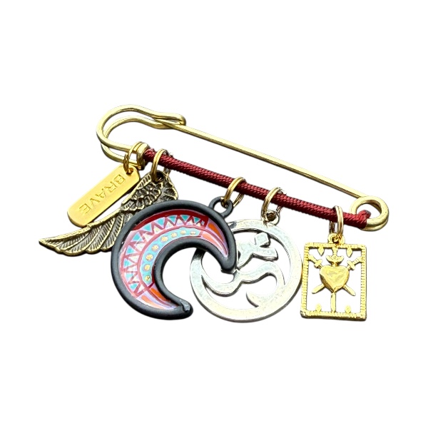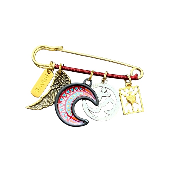 Este seguro dorado es más que un accesorio: es una pieza versátil que puedes usar en ropa, bolsas o donde tu intuición te guíe.